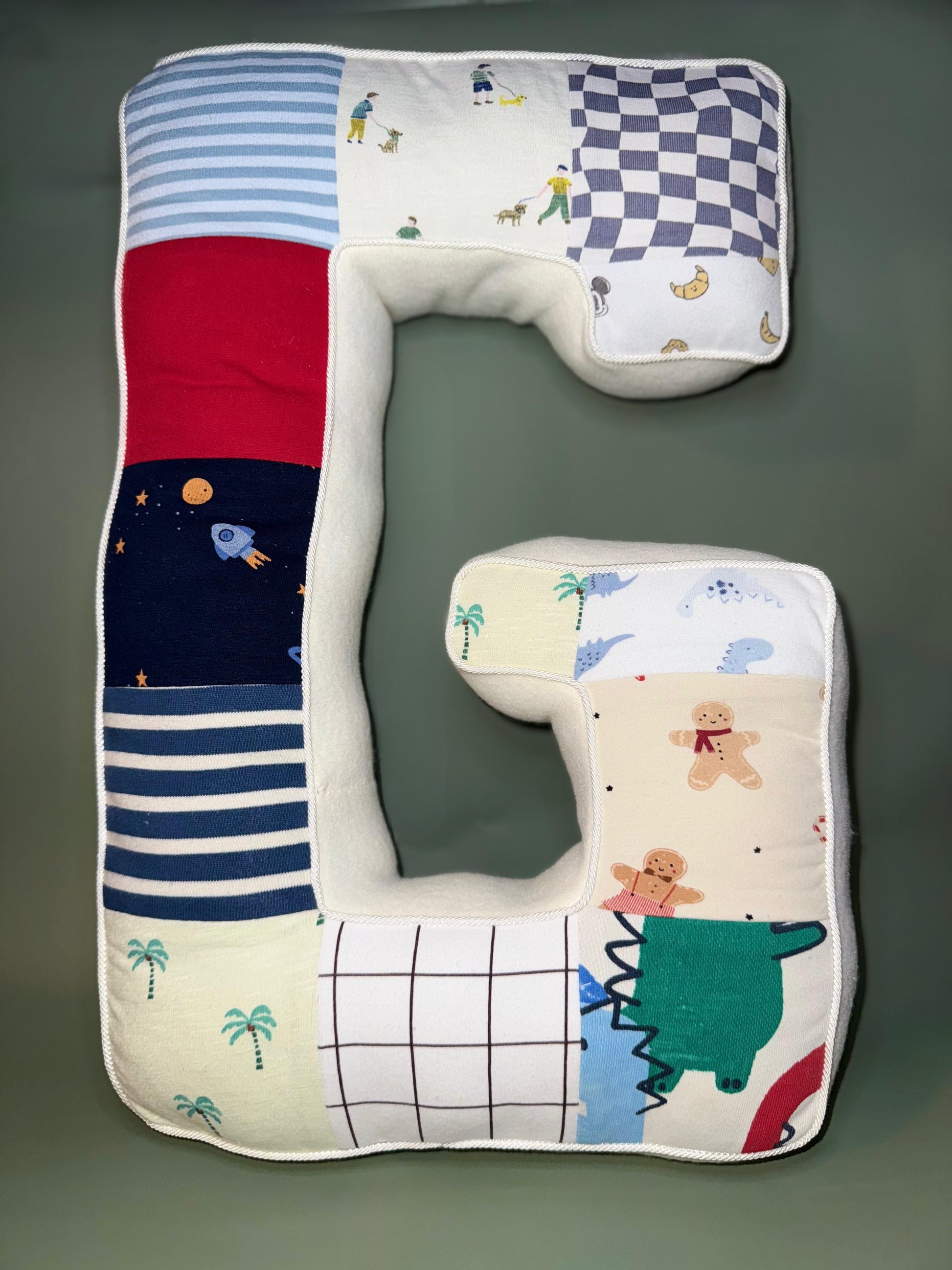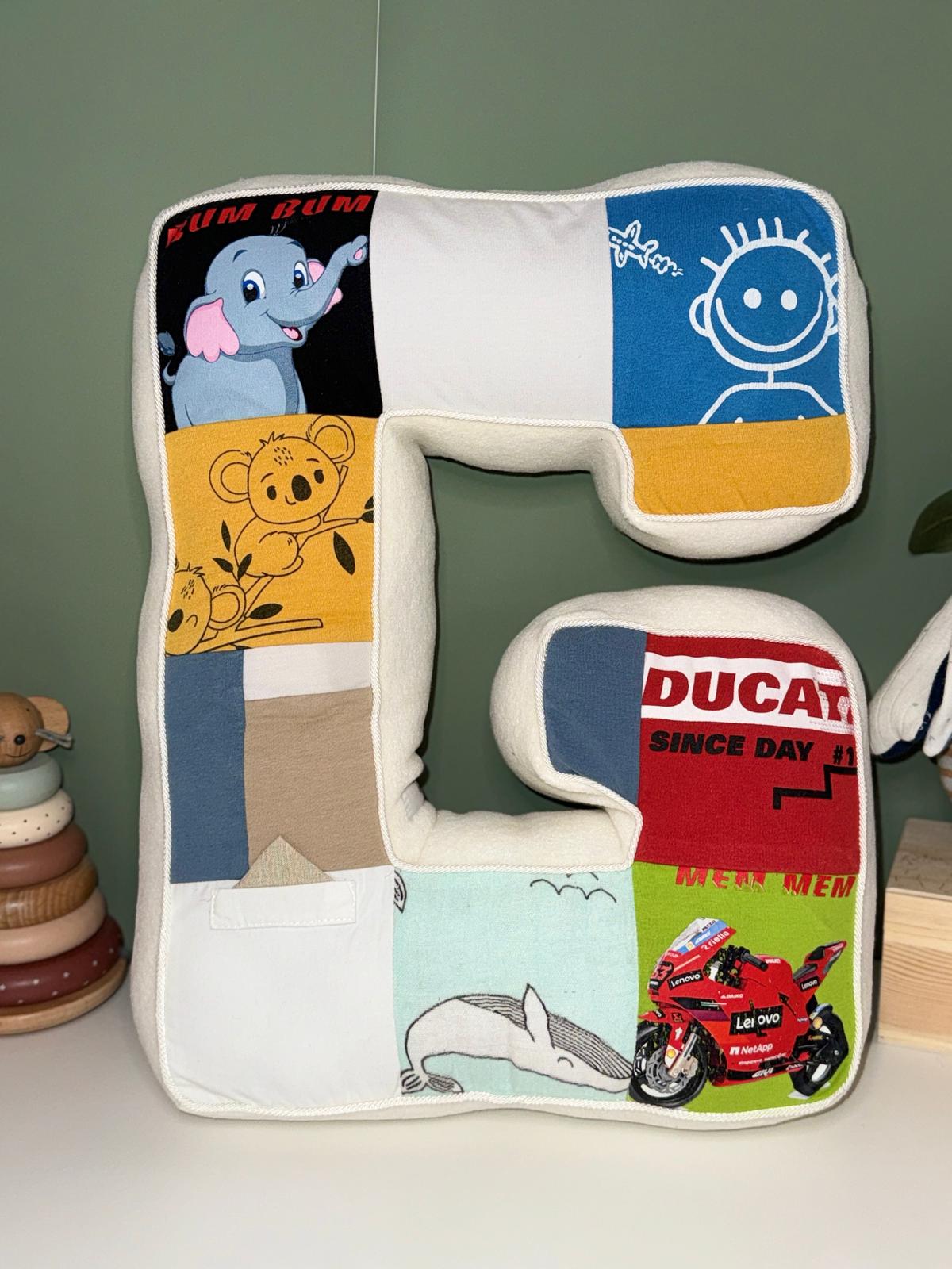 Ogni cuscino è unico e fatto a mano, pensato per diventare una decorazione speciale per la cameretta, un dolce ricordo da stringere o un regalo personalizzato con la sua iniziale.